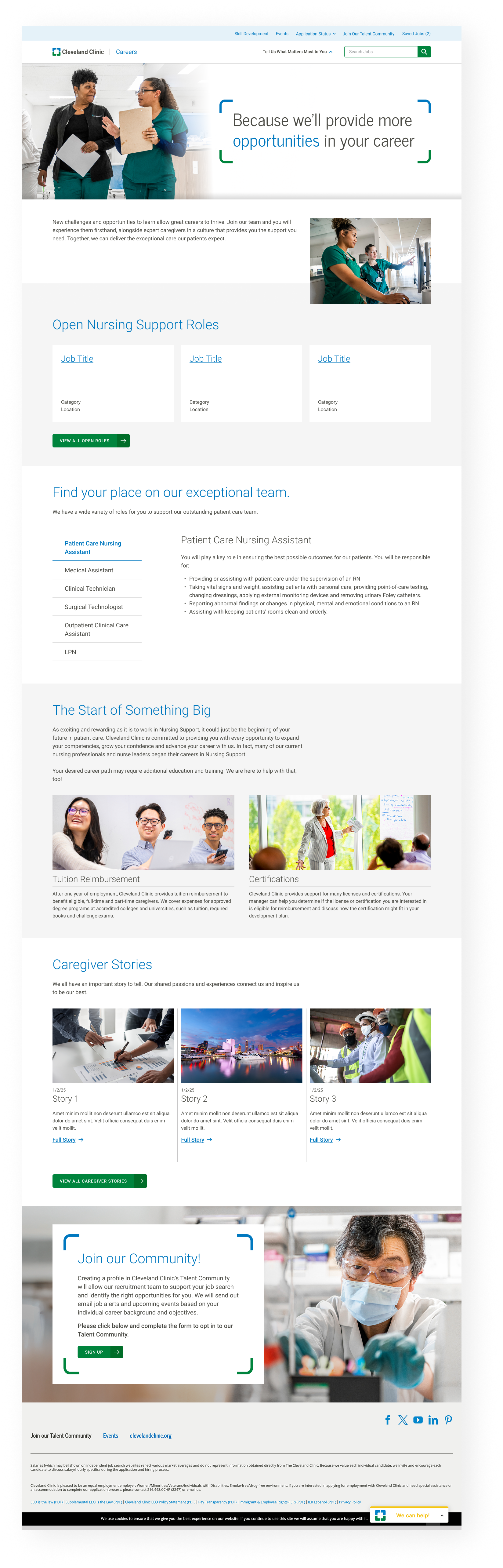 Cleveland Clinic needed to replace their existing careers website and create a solution that could handle an enormous amount of content across a range of healthcare fields. The primary challenge was information overload: users were getting lost in content irrelevant to their interests and career goals and bounce rates were high.