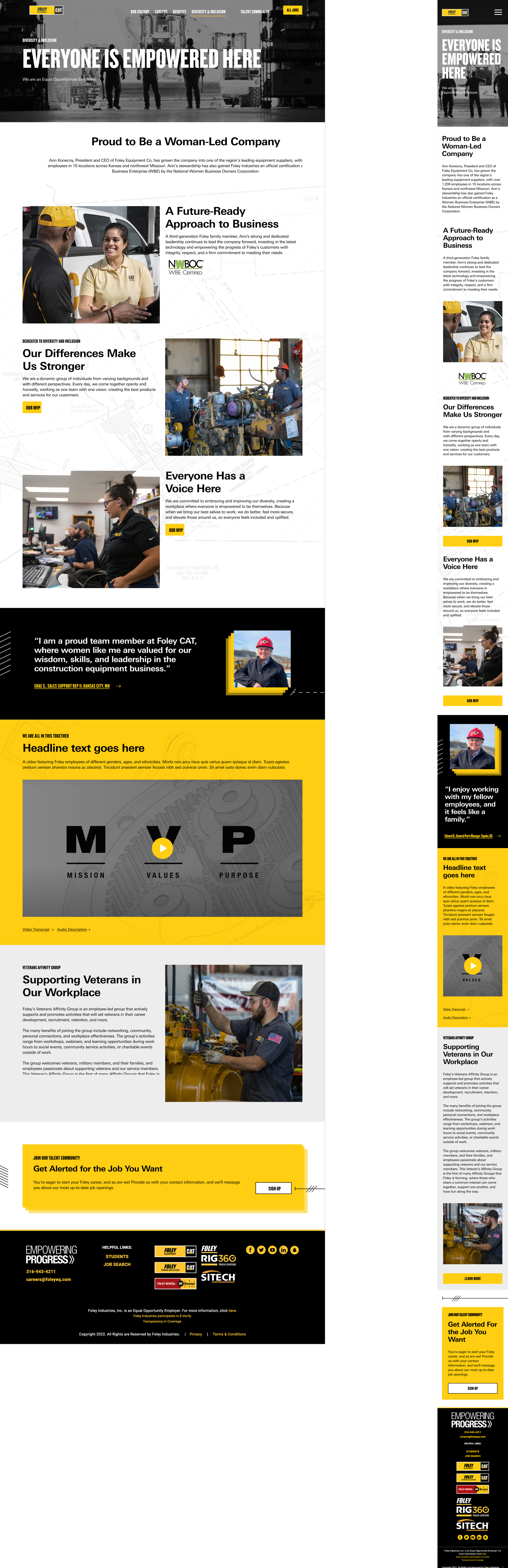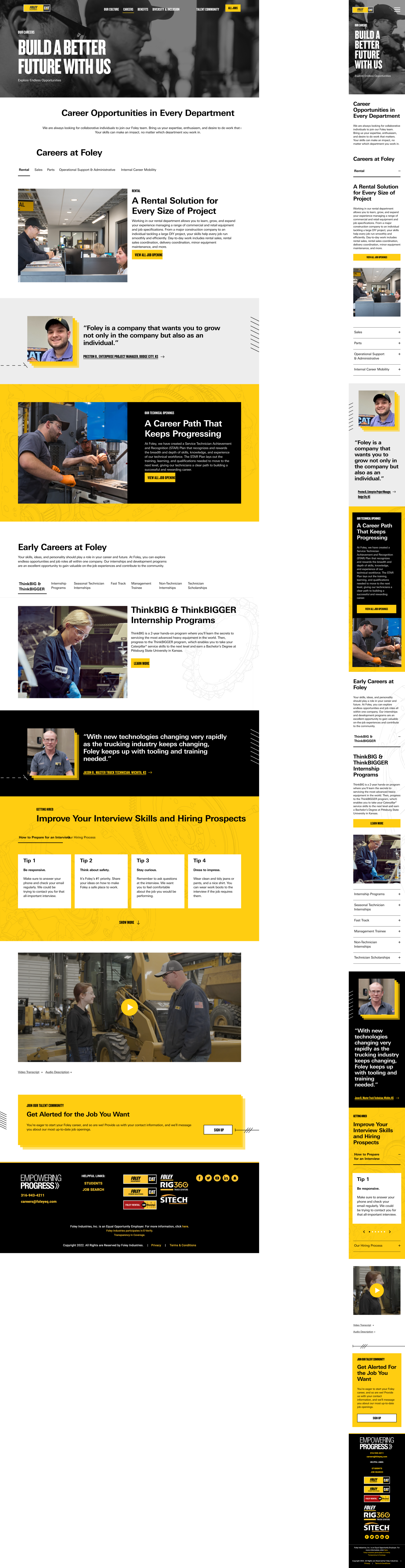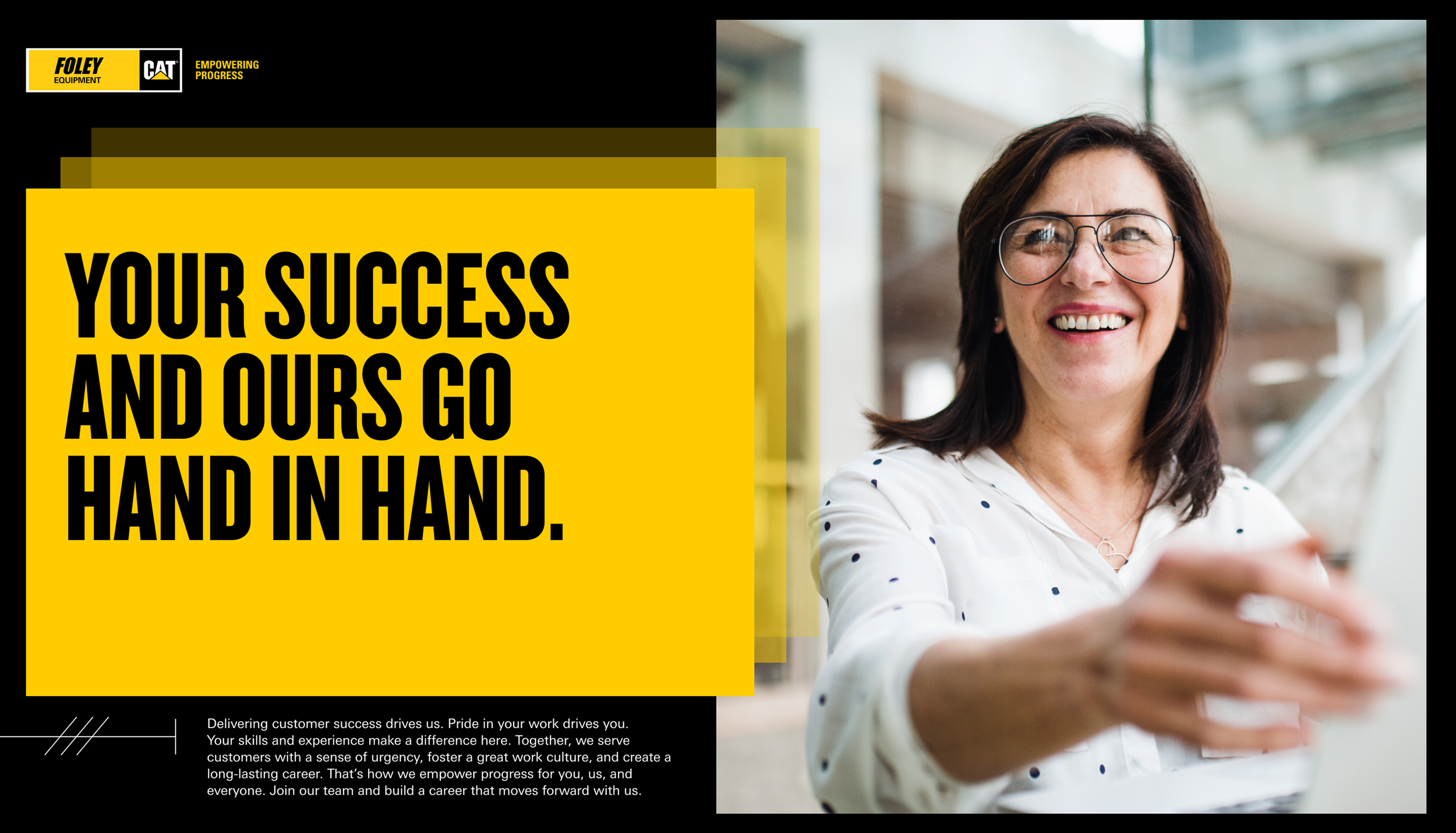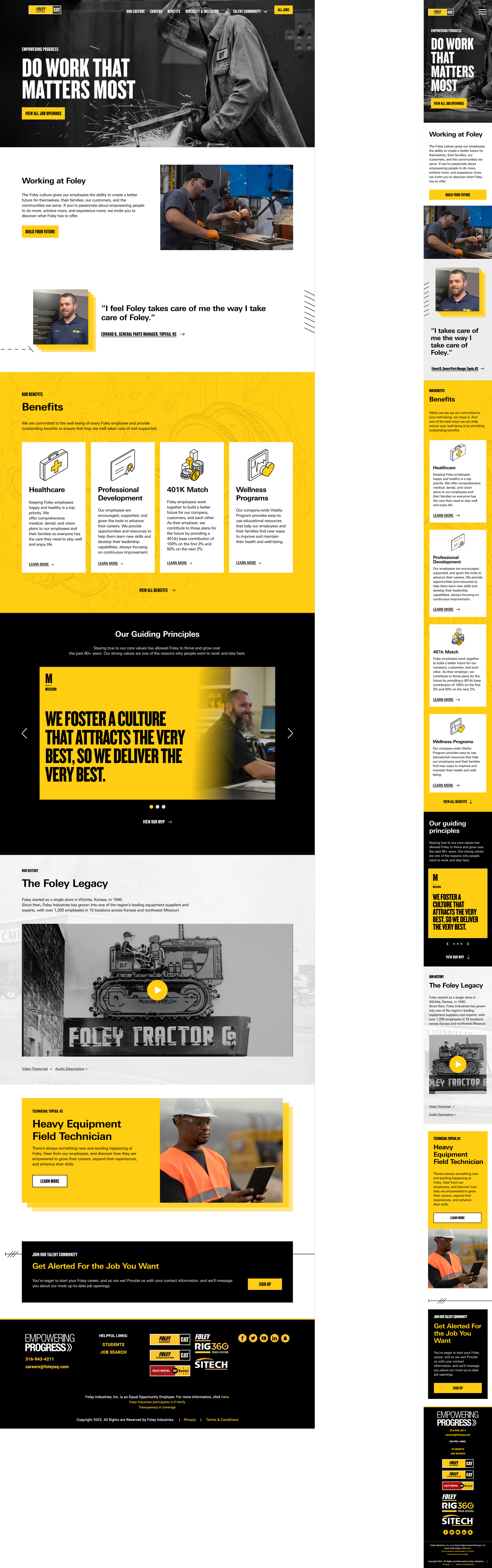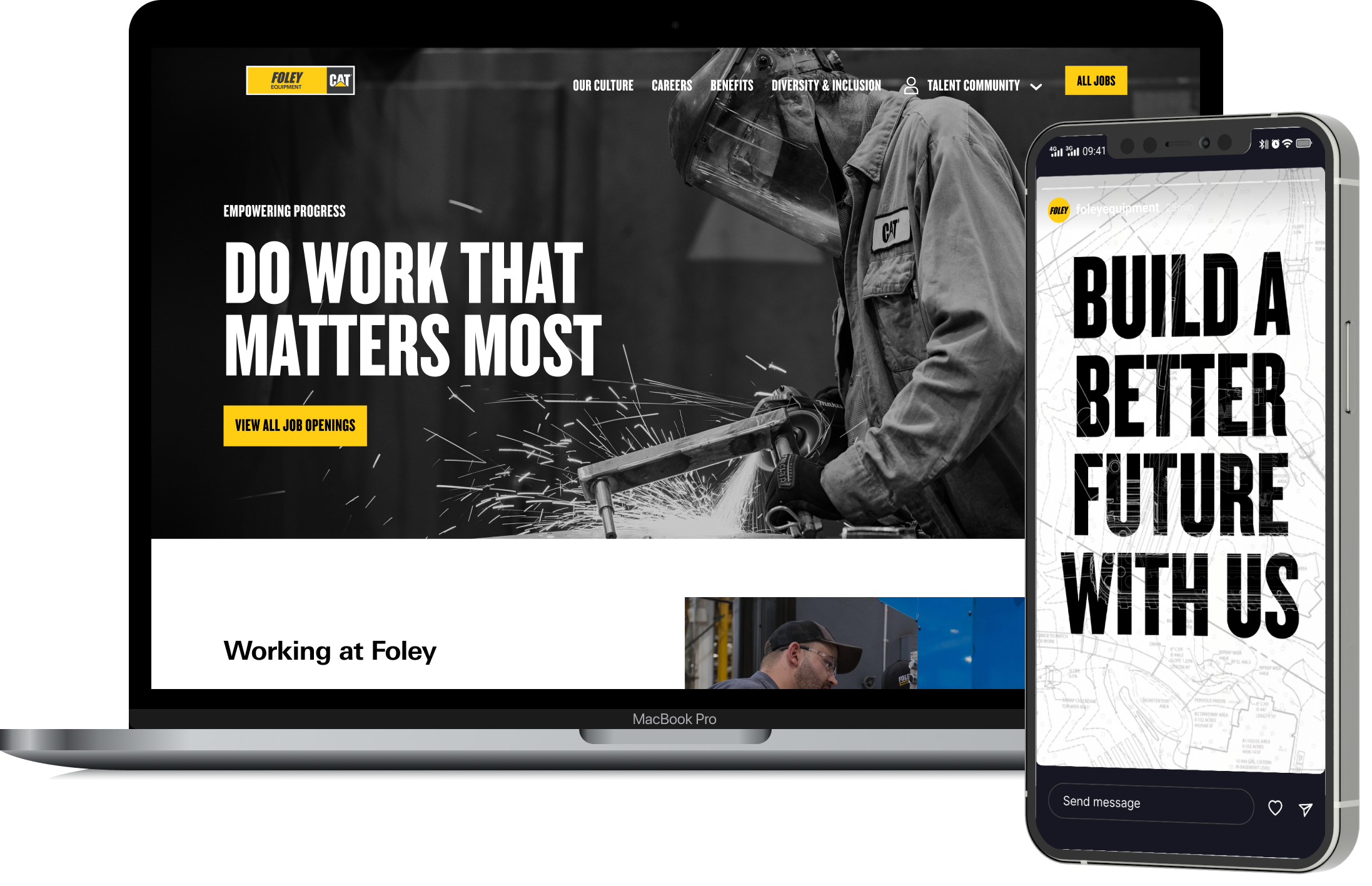 My team partnered with Foley Equipment to develop a new employer value proposition (EVP) brand and careers website that would reflect their culture and attract top talent. The project spanned concept development, visual identity, UX design, and cross-channel brand expression. The result was a cohesive, engaging brand presence that helped position Foley as an employer of choice.